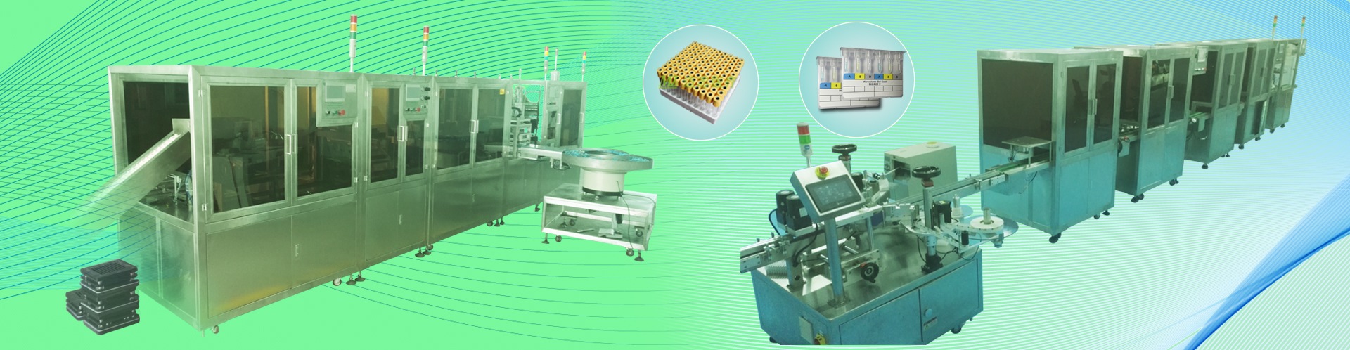 真空采血管生產設備自動化流水線性能說明 (1) 真空采血管生產結合國內實際生產需求,設計生產的真空采血管自動裝管,促凝劑加藥噴霧、烘干、蓋帽、抽真空壓帽、取管、裝托盤的全自動化機械設備; (2) 該機全部采用可編程控制,氣動執行機構。根據真空采血管的生產特點,通過程序軟件將所有的機械執行動作有機組合控制; (3) 該機配備自動熱收縮包裝機,可實現包裝自動化,達到全自動化組合生產的目的;